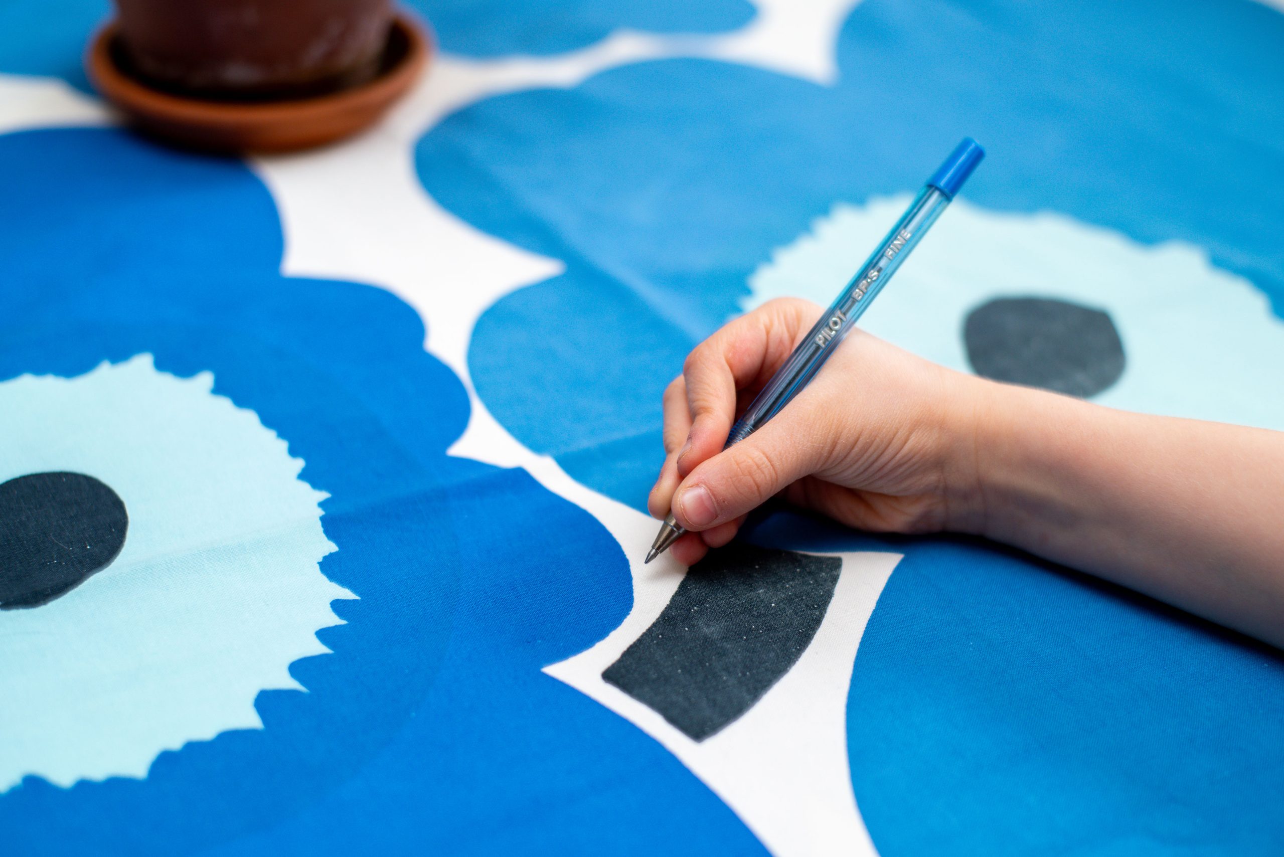 Teate kindlasti seda Marimekko moone kujutavat Unikko-nimelist lillemustrit igas Soome kodus? Minu jaoks tähendab see vakstut ümmarguse köögilaua peal, mille ümber olid tolleaegsed varbadest seljatoega toolid. Mu esimene loominguline katsetus on seotud just selle vakstuga, mille mustrilillede äärejooni püüdsin pastakaga üle joonistada, ise söötmistoolis istudes. Minu mäletamist mööda polnud see eriti edukas katse.